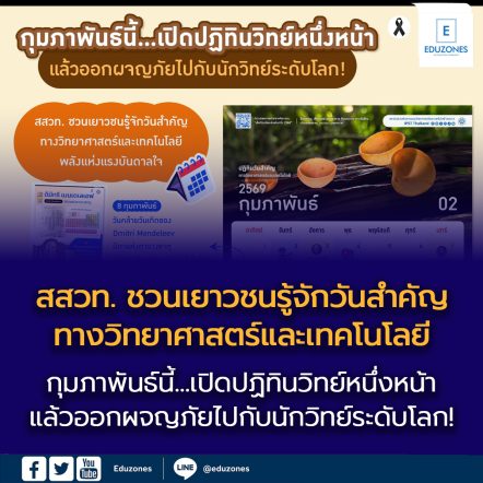 EZ Webmaster February 18, 2026 กุมภาพันธ์นี้…เปิดปฏิทินวิทย์หนึ่งหน้า แล้วออกผจญภัยไปกับนักวิทย์ระดับโลก! สสวท. ชวนเยาวชนรู้จักวันสำคัญทางวิทยาศาสตร์และเทคโนโลยี พลังแห่งแรงบันดาลใจ EZ Webmaster February 18, 2026 “ทำไมท้องฟ้าถึงเป็นสีฟ้า?” หรือ “ใครกันนะที่ทำให้หลอดไฟสว่างขึ้นได้?” คำถามเล็ก ๆ เหล่านี้คือจุดเริ่มต้นของการค้นพบที่ยิ่งใหญ่ เพราะวิทยาศาสตร์ไม่ได้อยู่แค่ในห้องทดลองหรือในตำราเล่มหนาเท่านั้น แต่คือการผจญภัยที่เริ่มจากความสงสัย ความอยากรู้ และความกล้าที่จะฝัน เดือนกุมภาพันธ์นี้ สถาบันส่งเสริมการสอนวิทยาศาสตร์และเทคโนโลยี (สสวท.) ขอชวนเยาวชน คุณครู และทุกคนร่วมเปิดโลกผ่าน “ปฏิทินวันสำคัญทางวิทยาศาสตร์และเทคโนโลยี ประจำปี 2569” เพียงเดือนเดียวก็อัดแน่นด้วยเรื่องราวของนักคิด นักประดิษฐ์ และวันที่ทั้งโลกพร้อมใจกันให้ความสำคัญกับวิทยาศาสตร์อย่างน่าทึ่งและน่าตื่นเต้น ก้าวเข้าสู่ต้นเดือนด้วยพลังแห่งการสร้างสรรค์ในวันที่ 2 กุมภาพันธ์ วันนักประดิษฐ์ ชวนทุกคนปลดปล่อยไอเดียใหม่ ๆ พร้อมย้อนรอยพระอัจฉริยภาพของรัชกาลที่ ๙ จากกังหันน้ำชัยพัฒนา ก่อนจะต่อด้วยวันที่ 3 กุมภาพันธ์ ที่เรารู้จัก Wilhelm Ludvig Johannsen ผู้มอบคำว่า “ยีน” ให้โลกได้เข้าใจความลับของร่างกาย และวันที่ 4 กุมภาพันธ์ วันมะเร็งโลก ที่สะท้อนพลังของวิทยาศาสตร์การแพทย์ในการส่งต่อความหวังให้มนุษยชาติ จากนั้นวันที่ 7 กุมภาพันธ์… Continue Reading