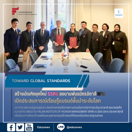 tui sakrapee February 19, 2026 ราชภัฏสวนสุนันทา ขยายเครือข่ายยุโรป จับมือ IIFM MILAN พัฒนาหลักสูตรแฟชั่นสากล tui sakrapee February 19, 2026 มหาวิทยาลัยราชภัฏสวนสุนันทา เดินหน้าขยายเครือข่ายความร่วมมือทางวิชาการระดับนานาชาติ ลงนามบันทึกความเข้าใจ (MOU) กับ Italian Institute of Fashion Management (IIFM) ณ เมือง มิลาน ประเทศ อิตาลี เพื่อพัฒนาการศึกษาด้านแฟชั่นและอุตสาหกรรมสร้างสรรค์ให้สอดคล้องกับมาตรฐานสากล โดยคณะผู้บริหารที่ได้เข้าร่วมในพิธีลงนามความร่วมมือดังกล่าว ประกอบด้วย รศ.ดร.ฤๅเดช เกิดวิชัย นายกสภามหาวิทยาลัยราชภัฏสวนสุนันทา พร้อมด้วย รศ.ดร.ชุติกาญจน์ ศรีวิบูลย์ อธิการบดีมหาวิทยาลัยราชภัฏสวนสุนันทา ดร.เอนก เพิ่มวงศ์เสนีย์ อุปนายกสภามหาวิทยาลัยราชภัฏสวนสุนันทา อ.ต้นฝน ทรัพย์นิรันดร์ ผู้ช่วยอธิการบดีฝ่ายวิเทศสัมพันธ์… Continue Reading