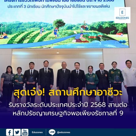 สุดเจ๋ง! สถานศึกษาอาชีวะ รับรางวัลโครงการชีววิถีฯ ระดับประเทศ ประจำปี 2568 สานต่อปณิธานหลักปรัชญาเศรษฐกิจพอเพียงของพ่อหลวงรัชกาลที่ 9 EZ WebmasterDecember 3, 2025 สุดเจ๋ง! สถานศึกษาอาชีวะ รับรางวัลโครงการชีววิถีฯ ระดับประเทศ ประจำปี 2568 สานต่อปณิธานหลักปรัชญาเศรษฐกิจพอเพียงของพ่อหลวงรัชกาลที่ 9 วันนี้ (1 ธ.ค. 68) นายยศพล เวณุโกเศศ เลขาธิการคณะกรรมการการอาชีวศึกษา มอบหมายให้ นายสง่า แต่เชื้อสาย… “สหพัฒนพิบูล” เติมฝัน สานต่ออนาคตบุตรพนักงาน มอบ 300 ทุนการศึกษา สร้างพลังแห่งการเรียนรู้ EZ WebmasterDecember 3, 2025 “สหพัฒนพิบูล” เติมฝัน สานต่ออนาคตบุตรพนักงาน มอบ 300 ทุนการศึกษา สร้างพลังแห่งการเรียนรู้ การศึกษา คือรากฐานสำคัญในการสร้างสรรค์อนาคตที่ดีและยั่งยืน ไม่ว่าจะอยู่ในช่วงวัยใดก็ตาม การเรียนรู้ไม่ควรหยุดนิ่ง ความสนใจใฝ่รู้จึงเป็นเรื่องสำคัญอย่างยิ่ง เพราะการมีองค์ความรู้ที่กว้างขวาง จะช่วยให้สามารถแข่งขันและเติบโตในโลกที่เปลี่ยนแปลงได้ บริษัท สหพัฒนพิบูล จำกัด (มหาชน) หรือ SPC สานต่อเจตนารมณ์ความห่วงใยและใส่ใจบุคลากร มุ่งมั่นที่จะเป็นส่วนหนึ่งในการสนับสนุนและส่งเสริมการเรียนรู้ของเยาวชน ผ่าน…