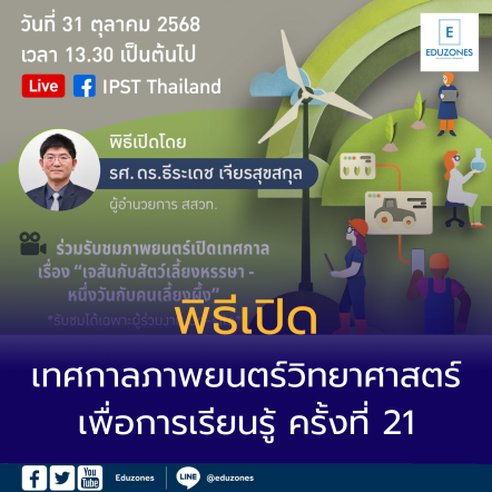 EZ Webmaster December 2, 2025 ปฏิทินข่าว: พิธีเปิด “เทศกาลภาพยนตร์วิทยาศาสตร์เพื่อการเรียนรู้ ครั้งที่ 21” EZ Webmaster December 2, 2025 ปฏิทินข่าว: พิธีเปิด “เทศกาลภาพยนตร์วิทยาศาสตร์เพื่อการเรียนรู้ ครั้งที่ 21” วันที่ 31 ตุลาคม 2568 เวลา 13.30 น. รองศาสตราจารย์ ดร.ธีระเดช เจียรสุขสกุล ผู้อำนวยการ สสวท. ผู้แทนรัฐมนตรีว่าการกระทรวงศึกษาธิการ เป็นประธานในพิธีเปิด “งานเทศกาลภาพยนตร์วิทยาศาสตร์เพื่อการเรียนรู้ ครั้งที่ 21” ภายใต้แนวคิด งานสีเขียว (Green Jobs)” พร้อมด้วย ดร.ชัยวุฒิ เลิศวนสิริวรรณ ผู้ช่วยผู้อำนวยการ สสวท. กล่าวรายงานการจัดงาน และคณะผู้บริหารระดับสูงจากองค์กรร่วมจัดเข้าร่วมพิธี ได้แก่ Ms.… Continue Reading