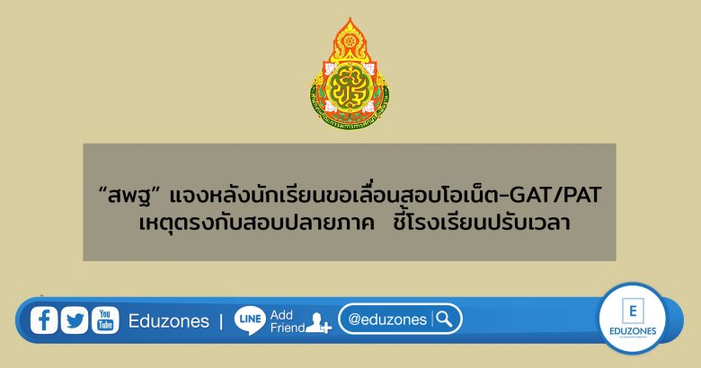 EZ Webmaster March 3, 2021 ด่วน! “สพฐ” แจงหลังนักเรียนขอเลื่อนสอบโอเน็ต GAT/PAT เหตุตรงกับสอบปลายภาค ชี้โรงเรียนปรับเวลา EZ Webmaster March 3, 2021 “สพฐ” แจงหลังนักเรียนขอเลื่อนสอบโอเน็ต GAT/PAT เหตุตรงกับสอบปลายภาค ชี้โรงเรียนปรับเวลา เมื่อวันที่ 3 มีนาคม 2564 นายอัมพร พินะสา เลขาธิการคณะกรรมการการศึกษาขั้นพื้นฐาน (เลขาธิการ กพฐ.) เปิดเผยกรณีที่นักเรียนเรียกร้องขอเลื่อนการทดสอบทางการศึกษาระดับชาติขั้นพื้นฐานแห่งชาติ หรือ โอเน็ต การสอบความถนัดทั่วไปหรือ GAT และความถนัดทางวิชาการ/วิชาชีพ หรือ PAT และ 9 วิชาสามัญ เพราะตรงกับวันสอบปลายภาคของนักเรียนบางส่วนว่า การสอบปลายภาคของ โรงเรียน ทางสำนักงานคณะกรรมการการศึกษาขั้นพื้นฐาน (สพฐ.) เน้นย้ำชัดเจนแล้วว่า หากจะกำหนดวันสอบใด… Continue Reading