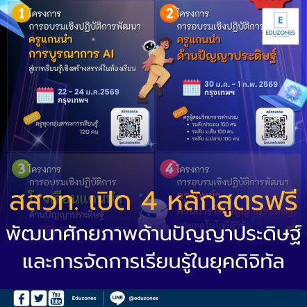 EZ Webmaster December 2, 2025 ยกระดับครูไทยสู่ยุค AI สสวท. เปิด 4 หลักสูตรอบรมฟรี พัฒนาศักยภาพด้านปัญญาประดิษฐ์ (AI) และการจัดการเรียนรู้ในยุคดิจิทัล สมัครได้ถึง 31 ธ.ค. 68 EZ Webmaster December 2, 2025 ยกระดับครูไทยสู่ยุค AI สสวท. เปิด 4 หลักสูตรอบรมฟรี พัฒนาศักยภาพด้านปัญญาประดิษฐ์ (AI) และการจัดการเรียนรู้ในยุคดิจิทัล สมัครได้ถึง 31 ธ.ค. 68 สถาบันส่งเสริมการสอนวิทยาศาสตร์และเทคโนโลยี (สสวท.) ขอเชิญชวนครูทุกสังกัดทั่วประเทศเข้าร่วมการอบรมเพื่อพัฒนาศักยภาพด้านปัญญาประดิษฐ์ (AI) และการจัดการเรียนรู้ในยุคดิจิทัล ผ่าน 4 หลักสูตรสำคัญ ได้แก่ การอบรมครูแกนนำการบูรณาการ AI สู่ห้องเรียน การอบรมครูแกนนำด้านปัญญาประดิษฐ์ การอบรมโรงเรียนแกนนำด้านปัญญาประดิษฐ์ และการอบรมครูแกนนำด้านการใช้ปัญญาประดิษฐ์และเทคโนโลยีดิจิทัลอย่างมีจริยธรรม ซึ่งจัดขึ้นเพื่อยกระดับความรู้ ความเข้าใจ และทักษะการประยุกต์ใช้ AI ให้แก่ครูไทย อย่างรอบด้าน โดยเปิดรับสมัครตั้งแต่ 15 พฤศจิกายน – 31 ธันวาคม 2568 ผู้สนใจสามารถศึกษาคุณสมบัติและรายละเอียดการสมัครได้ที่ https://ipst.me/cs-ai โดยเงื่อนไขของแต่ละหลักสูตรแตกต่างกัน ขอให้ศึกษาข้อมูลอย่างรอบคอบก่อนสมัคร ติดตามข่าวสารเพิ่มเติมได้ที่เพจเฟซบุ๊กสาขาคอมพิวเตอร์ สสวท. https://www.facebook.com/oho.ipst?locale=th_TH สอบถามเพิ่มเติมที่อีเมล cs@proj.ipst.ac.th Continue Reading