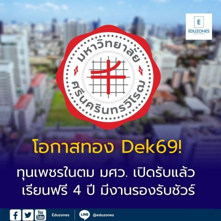 โอกาสทอง Dek69! ทุนเพชรในตม มศว. เปิดรับแล้ว เรียนฟรี 4 ปี มีงานรองรับชัวร์ EZ WebmasterFebruary 13, 2026 โอกาสทอง Dek69! ทุนเพชรในตม มศว. เปิดรับแล้ว เรียนฟรี 4 ปี มีงานรองรับชัวร์ เรียนต่อแบบไม่ต้องกังวลเรื่องค่าเทอม แถมจบมามีงานราชการรองรับทันที! มหาวิทยาลัยศรีนครินทรวิโรฒ (มศว) เปิดประตูรับสมัคร ‘ทุนเพชรในตม’ โครงการในตำนานที่เฟ้นหาเยาวชนจากพื้นที่ห่างไกลมาเป็นแม่พิมพ์ของชาติ ใครที่อยากเป็นครูแต่กังวลเรื่องค่าใช้จ่าย บอกเลยว่านี่คือ…