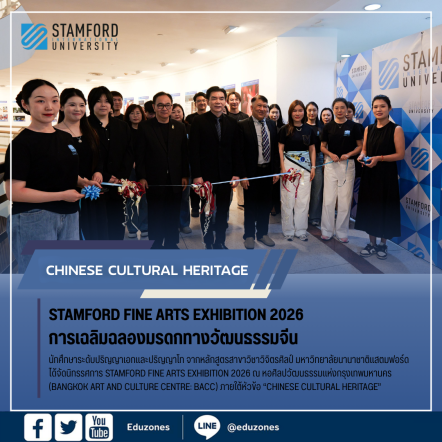 tui sakrapee February 12, 2026 Stamford Fine Arts Exhibition 2026: การเฉลิมฉลองมรดกทางวัฒนธรรมจีน tui sakrapee February 12, 2026 เมื่อวันอังคารที่ 10 กุมภาพันธ์ 2569 นักศึกษาระดับปริญญาเอกและปริญญาโท จากหลักสูตรสาขาวิชาวิจิตรศิลป์ มหาวิทยาลัยนานาชาติแสตมฟอร์ด ได้จัดนิทรรศการ Stamford Fine Arts Exhibition 2026 ณ หอศิลปวัฒนธรรมแห่งกรุงเทพมหานคร (Bangkok Art and Culture Centre: BACC) ภายใต้หัวข้อ “Chinese Cultural Heritage” นิทรรศการครั้งนี้นำเสนอผลงานศิลปะที่ได้รับแรงบันดาลใจจากอารยธรรมจีน ซึ่งมีพัฒนาการยาวนานนับพันปี และมีอิทธิพลอย่างลึกซึ้งต่อขนบธรรมเนียมทางศิลปะ แนวคิดทางปรัชญา และการแสดงออกทางวัฒนธรรมทั่วทั้งเอเชียและโลก ผ่านผลงานสร้างสรรค์ที่หลากหลาย นักศึกษาได้ถ่ายทอดแรงบันดาลใจและความมุ่งมั่นทางศิลปะ… Continue Reading