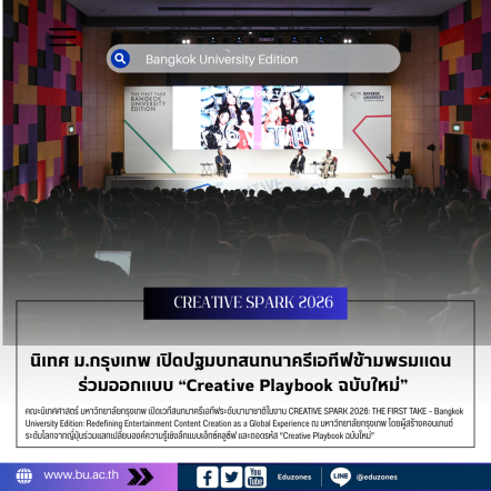 นิเทศ ม.กรุงเทพ เปิดปฐมบทสนทนาครีเอทีฟข้ามพรมแดน ร่วมออกแบบ “Creative Playbook ฉบับใหม่” ขับเคลื่อนอุตสาหกรรมบันเทิงเอเชียสู่เวทีโลก tui sakrapeeJanuary 20, 2026 กรุงเทพฯ — คณะนิเทศศาสตร์ มหาวิทยาลัยกรุงเทพ เปิดเวทีสนทนาครีเอทีฟระดับนานาชาติในงาน CREATIVE SPARK 2026: THE FIRST TAKE – Bangkok University Edition: Redefining Entertainment Content…