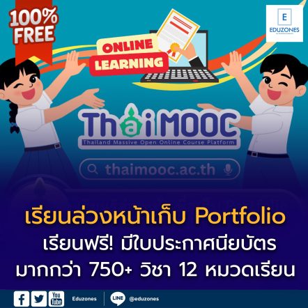 มทร.ธัญบุรี พร้อมปั้นบัณฑิตสู่ยุค NEXT GEN การันตีความสำเร็จด้วยคลื่นมหาชน tui sakrapeeDecember 4, 2025 มหาวิทยาลัยเทคโนโลยีราชมงคลธัญบุรี (มทร.ธัญบุรี) สร้างปรากฏการณ์ครั้งสำคัญในแวดวงการศึกษาไทยผ่านงาน ‘RMUTT NEXT GEN: Open House 2026 : เปิดประตูสู่ราชมงคลธัญบุรี 69’ เมื่อวันที่ 27 และ 28 พฤศจิกายน 2568… ม.กรุงเทพ จัดงาน The Shape of Tomorrow: Bangkok Art & Architecture @Dib Bangkok tui sakrapeeDecember 4, 2025 คณะสถาปัตยกรรมศาสตร์ มหาวิทยาลัยกรุงเทพ จัดงาน “The Shape of Tomorrow: Bangkok Art & Architecture” เปิดพื้นที่แลกเปลี่ยนองค์ความรู้และประสบการณ์ระหว่างนักวิชาการ ผู้เชี่ยวชาญในวงการสถาปัตยกรรมที่มุ่งเน้นแนวคิดการออกแบบที่ตอบโจทย์ความยั่งยืน (Sustainability) และการปรับใช้พื้นที่อาคารให้เกิดคุณค่าใหม่ (Adaptive Reuse) โดยปรับเปลี่ยนพื้นที่เดิมให้กลายเป็นพื้นที่สร้างสรรค์อย่าง… มหาวิทยาลัยราชภัฏสวนสุนันทา จับมือ “เอ็ม พาวเวอร์ คอร์ปอเรชั่น” ลงนาม MOU ขับเคลื่อนระบบจัดการวัสดุรีไซเคิล สู่มหาวิทยาลัยสีเขียวอย่างยั่งยืน tui sakrapeeDecember 4, 2025 เมื่อวันพฤหัสบดีที่ 4 ธันวาคม 2568 มหาวิทยาลัยราชภัฏสวนสุนันทา จัดพิธีลงนามบันทึกความเข้าใจ (MOU) ร่วมกับบริษัท เอ็ม พาวเวอร์ คอร์ปอเรชั่น จำกัด ณ ห้องประชุมสภามหาวิทยาลัย เพื่อขับเคลื่อนการพัฒนาระบบการจัดการวัสดุรีไซเคิลภายในมหาวิทยาลัยอย่างเป็นรูปธรรมและยั่งยืน พิธีลงนามในครั้งนี้มีวัตถุประสงค์เพื่อพัฒนากลไกการจัดการวัสดุรีไซเคิลให้มีประสิทธิภาพยิ่งขึ้น ส่งเสริมการคัดแยกขยะอย่างถูกต้อง เพิ่มคุณค่าและสร้างรายได้จากวัสดุที่สามารถนำกลับมาใช้ใหม่… สุดเจ๋ง! สถานศึกษาอาชีวะ รับรางวัลโครงการชีววิถีฯ ระดับประเทศ ประจำปี 2568 สานต่อปณิธานหลักปรัชญาเศรษฐกิจพอเพียงของพ่อหลวงรัชกาลที่ 9 EZ WebmasterDecember 3, 2025 สุดเจ๋ง! สถานศึกษาอาชีวะ รับรางวัลโครงการชีววิถีฯ ระดับประเทศ ประจำปี 2568 สานต่อปณิธานหลักปรัชญาเศรษฐกิจพอเพียงของพ่อหลวงรัชกาลที่ 9 วันนี้ (1 ธ.ค. 68) นายยศพล เวณุโกเศศ เลขาธิการคณะกรรมการการอาชีวศึกษา มอบหมายให้ นายสง่า แต่เชื้อสาย… Search for: Search Category: ข่าวเด่น EZ Webmaster August 24, 2025 เรียนรู้ล่วงหน้าเพื่อเก็บ Portfolio “เตรียมเข้าสู่รั้วมหาวิทยาลัย” EZ Webmaster August 24, 2025 เรียนรู้ล่วงหน้าเพื่อเก็บ Portfolio “เตรียมเข้าสู่รั้วมหาวิทยาลัย” มากกว่า 750+ รายวิชา จาก 12 หมวดหมู่บทเรียน พัฒนาบทเรียนโดยมหาวิทยาลัยและหน่วยงานชั้นนำ บทเรียนระยะสั้นพร้อมตัวอย่างที่เข้าใจง่าย เรียนได้ทุกที่ ทุกเวลา บนแพลตฟอร์ม Thai MOOC . การศึกษาและการฝึกอบรม (73 รายวิชา) https://thaimooc.ac.th/course-category/01/ . คณิตศาสตร์และวิทยาศาสตร์ (29 รายวิชา) https://thaimooc.ac.th/course-category/02/ . คอมพิวเตอร์และเทคโนโลยี (166 รายวิชา) https://thaimooc.ac.th/course-category/03/ .… Continue Reading EZ Webmaster August 18, 2025 
