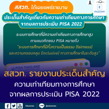 สสวท. เผยรายงานประเด็นสำคัญเกี่ยวกับความเท่าเทียมทางการศึกษา จากผลการประเมิน PISA 2022 EZ Webmaster December 2, 2025 สสวท. เผยรายงานประเด็นสำคัญเกี่ยวกับความเท่าเทียมทางการศึกษา จากผลการประเมิน PISA 2022 สถาบันส่งเสริมการสอนวิทยาศาสตร์และเทคโนโลยี (สสวท.) เผยแพร่รายงาน “ประเด็นสำคัญเกี่ยวกับความเท่าเทียมทางการศึกษาจากผลการประเมิน PISA 2022″ นำเสนอภาพรวมระบบการศึกษาที่ให้ความสำคัญต่อความเป็นธรรม (Fairness) และความครอบคลุม (Inclusive) ทางการศึกษาในระดับสูง พร้อมวิเคราะห์การเปลี่ยนแปลงด้านความเท่าเทียมของประเทศที่เข้าร่วมในช่วงที่ผ่านมา ตลอดจนประเด็นความแตกต่างของนักเรียน ซึ่งสะท้อนความหลากหลายและความท้าทายทางการศึกษาทั่วโลก สสวท. ขอเชิญชวนคุณครู และผู้ที่สนใจร่วมเรียนรู้ข้อมูลสำคัญ และดาวน์โหลดรายงานฉบับเต็มได้ทางเว็บไซต์ PISA Thailand ที่ https://pisathailand.ipst.ac.th/pisa2022-equity-in-education/ Continue Reading