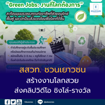 สสวท. ชวนเยาวชนสร้างงานโลกสวย ส่งคลิปวิดีโอ ชิงโล่-รางวัล ในหัวข้อ “Green Jobs: งานที่โลกต้องการ” EZ Webmaster December 2, 2025 สสวท. ชวนเยาวชนสร้างงานโลกสวย ส่งคลิปวิดีโอ ชิงโล่-รางวัล ในหัวข้อ “Green Jobs: งานที่โลกต้องการ” สถาบันส่งเสริมการสอนวิทยาศาสตร์และเทคโนโลยี (สสวท.) ขอเชิญชวนนักเรียนระดับประถมศึกษาถึงมัธยมศึกษาตอนปลายทั่วประเทศ ร่วมสร้างสรรค์คลิปวิดีโอ ความยาว 3–5 นาที ในหัวข้อ “Green Jobs: งานที่โลกต้องการ” เพื่อสะท้อนมุมมองต่อ “งานสีเขียว” ซึ่งเป็นอาชีพสำคัญที่ช่วยอนุรักษ์สิ่งแวดล้อม ลดมลพิษ และส่งเสริมความยั่งยืน ผู้สนใจสามารถสมัครเป็นทีม 2–5 คน พร้อมครูที่ปรึกษา 1 คน ส่งผลงานได้ตั้งแต่วันนี้ถึง 31 ธันวาคม 2568 โดยทุกผลงานที่ได้รับรางวัลจะได้รับโล่เกียรติยศ เกียรติบัตร และของรางวัลจาก สสวท. ประกาศผลภายในวันที่ 26 มกราคม 2569 ดูรายละเอียดเพิ่มเติมที่ https://sciencefilm.ipst.ac.th/contest ติดต่อสอบถามได้ที่อีเมล scifilm@proj.ipst.ac.th Continue Reading