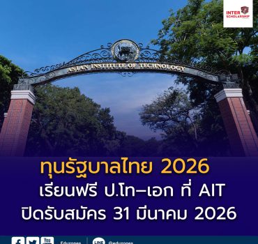 รัฐบาลไทยเปิดรับสมัคร “Royal Thai Government Scholarships 2026” EZ WebmasterDecember 7, 2025 🎓🇹🇭 รัฐบาลไทยเปิดรับสมัคร “Royal Thai Government Scholarships 2026”💯 คนไทยสมัครได้ทุกทุน! เรียนฟรี ป.โท–เอก ที่ AIT พร้อมสนับสนุนเต็มจำนวน สถาบันเทคโนโลยีแห่งเอเชีย (Asian Institute of Technology…