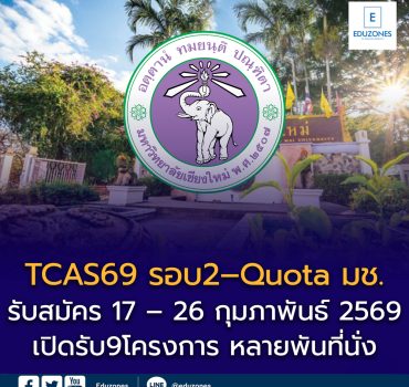 TCAS69 รอบ2 – Quota มหาวิทยาลัยเชียงใหม่ (CMU) EZ Webmaster December 7, 2025 📣 TCAS69 รอบ2 – Quota มหาวิทยาลัยเชียงใหม่ (CMU) ปีการศึกษา 2569 มาแล้ว!โอกาสสำคัญของ #Dek69 โดยเฉพาะน้อง ๆ ในภาคเหนือ ✨มหาวิทยาลัยเชียงใหม่ เปิดรับสมัครบุคคลเข้าศึกษาต่อระดับปริญญาตรีผ่านระบบ TCAS69 รอบที่ 2 : โควตา (Quota)📅 รับสมัครวันที่ 17 – 26 กุมภาพันธ์ 2569 รอบนี้ถือเป็นรอบ “โอกาสทอง” สำหรับนักเรียนที่เข้าเกณฑ์พื้นที่ ความสามารถพิเศษ และโครงการเฉพาะทาง เพราะ✅ แข่งขันเฉพาะกลุ่ม✅ โอกาสติดสูง✅ บางสาขาไม่ต้องใช้ A-Level ครบทุกวิชา ✅ โครงการที่เปิดรับสมัคร TCAS2… Continue Reading