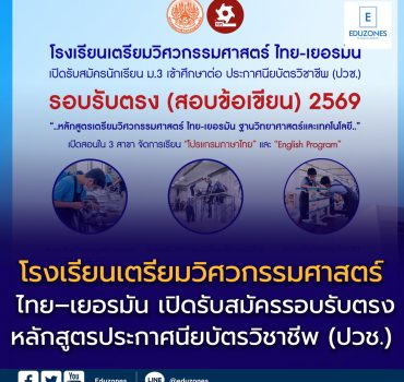 โรงเรียนเตรียมวิศวกรรมศาสตร์ ไทย–เยอรมัน เปิดรับสมัครรอบรับตรง (สอบข้อเขียน) ปีการศึกษา 2569 EZ Webmaster December 7, 2025 📣 โรงเรียนเตรียมวิศวกรรมศาสตร์ ไทย–เยอรมัน เปิดรับสมัครรอบรับตรง (สอบข้อเขียน) ปีการศึกษา 2569สำหรับนักเรียนระดับ ม.3 ที่สนใจเข้าศึกษาต่อใน🎓 หลักสูตรประกาศนียบัตรวิชาชีพ (ปวช.) เตรียมวิศวกรรมศาสตร์ ไทย–เยอรมัน ฐานวิทยาศาสตร์และเทคโนโลยี ✅ เหมาะสำหรับน้อง ๆ ที่มีความสนใจด้านวิศวกรรมศาสตร์ – เทคโนโลยี – อุตสาหกรรม – นวัตกรรม ✨ คุณสมบัติผู้สมัคร ▪️ สำเร็จการศึกษา มัธยมศึกษาตอนต้น (ม.1–ม.3)✅ GPAX ไม่ต่ำกว่า 2.50 หรือ ▪️ กำลังศึกษา ชั้น ม.4 กลุ่มสาระ คณิตศาสตร์–วิทยาศาสตร์–เทคโนโลยี✅ ผลการเรียน ไม่ต่ำกว่า… Continue Reading