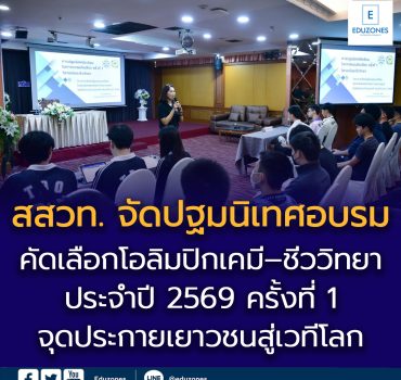 สสวท. จัดปฐมนิเทศอบรมคัดเลือกโอลิมปิกเคมี–ชีววิทยา ประจำปี 2569 ครั้งที่ 1 จุดประกายเยาวชนสู่เวทีโลก สถาบันส่งเสริมการสอนวิทยาศาสตร์และเทคโนโลยี (สสวท.) จัดปฐมนิเทศการอบรมคัดเลือก ครั้งที่ 1 วิชาเคมีและชีววิทยา ภายใต้โครงการจัดส่งผู้แทนประเทศไทยไปแข่งขันคณิตศาสตร์และวิทยาศาสตร์โอลิมปิกระหว่างประเทศ ประจำปี…