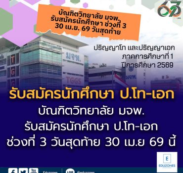 บัณฑิตวิทยาลัย มจพ. รับสมัครนักศึกษา ป.โท-เอก ช่วงที่ 3 วันสุดท้าย 30 เม.ย 69 นี้ EZ WebmasterApril 21, 2026 บัณฑิตวิทยาลัย มหาวิทยาลัยเทคโนโลยีพระจอมเกล้าพระนครเหนือ (มจพ.) เปิดรับสมัครนักศึกษาใหม่ ในระดับปริญญาโท และปริญญาเอก ภาคการศึกษาที่ 1 ปีการศึกษา 2569 ช่วงที่ 3 รอบสุดท้ายแล้ว! ภาคปกติและภาคพิเศษ ทั้งหลักสูตรภาษาไทย ภาษาอังกฤษ และนานาชาติ ทั้ง…