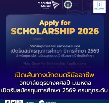 คณะทัศนมาตรศาสตร์ ม.รังสิต เปิดรับสมัครสอบคัดเลือก รอบบุตรหลาน หรือผู้ทำธุรกิจร้านแว่น และบุตรหลานของบุคลากรทางการแพทย์ ปีการศึกษา’69 EZ WebmasterApril 21, 2026 คณะทัศนมาตรศาสตร์ มหาวิทยาลัยรังสิต เปิดรับสมัครสอบคัดเลือกบุคคลเข้าศึกษาต่อในระดับปริญญาตรี หลักสูตรทัศนมาตรศาสตรบัณฑิต รอบบุตรหลานหรือผู้ทำธุรกิจร้านแว่น และบุตรหลานของบุคลากรทางการแพทย์ ประจำปีการศึกษา 2569 โดยมีคุณสมบัติเฉพาะดังนี้ 1. รับสมัคร ผู้สำเร็จการศึกษาระดับมัธยมปลาย สายวิทย์-คณิต เกรดเฉลี่ย 2.50 ขึ้นไป หรือสายศิลป์-คำนวณ เกรดเฉลี่ย… บัณฑิตวิทยาลัย มจพ. รับสมัครนักศึกษา ป.โท-เอก ช่วงที่ 3 วันสุดท้าย 30 เม.ย 69 นี้ EZ WebmasterApril 21, 2026 บัณฑิตวิทยาลัย มหาวิทยาลัยเทคโนโลยีพระจอมเกล้าพระนครเหนือ (มจพ.) เปิดรับสมัครนักศึกษาใหม่ ในระดับปริญญาโท และปริญญาเอก ภาคการศึกษาที่ 1 ปีการศึกษา 2569 ช่วงที่ 3 รอบสุดท้ายแล้ว! ภาคปกติและภาคพิเศษ ทั้งหลักสูตรภาษาไทย ภาษาอังกฤษ และนานาชาติ ทั้ง… AIS ผนึก อว. และจุฬาฯ เปิดตัวคอร์ส “AI Literacy” ภายใต้หลักสูตรอุ่นใจไซเบอร์ เสริมทักษะใช้ AI สร้างสรรค์ ควบคู่สร้างภูมิคุ้มกันภัยไซเบอร์ เรียนฟรี! บนแพลตฟอร์ม Thai MOOC และอุ่นใจ CYBER EZ WebmasterApril 20, 2026 AIS ร่วมกับกระทรวงการอุดมศึกษา วิทยาศาสตร์ วิจัยและนวัตกรรม (อว.) และจุฬาลงกรณ์มหาวิทยาลัย เปิดตัวคอร์สเรียน “อุ่นใจไซเบอร์ : AI Literacy” สื่อการเรียนรู้ในรูปแบบดิจิทัลที่ออกแบบมาเพื่อยกระดับความรู้และทักษะด้านปัญญาประดิษฐ์ (AI) ของคนไทย พัฒนาโดยคณาจารย์ผู้เชี่ยวชาญด้าน AI จากหลากหลายสาขา ครอบคลุมตั้งแต่ความหมายของ… ปิดวาร์ปทุนเรียนต่ออังกฤษ! King’s College London แจกทุน ป.โท “CMA CGM Excellence Fund” เรียนฟรี + ได้เงินใช้ปีละเกือบล้าน! EZ WebmasterApril 19, 2026 🇬🇧 เปิดวาร์ปทุนเรียนต่ออังกฤษ! King’s College London แจกทุน ป.โท “CMA CGM Excellence Fund” เรียนฟรี + ได้เงินใช้ปีละเกือบล้าน! ข่าวดีสำหรับน้อง ๆ ที่ฝันอยากเรียนต่ออังกฤษ! ล่าสุด… ทุนดีดี เปิดเส้นทางนักดนตรีมืออาชีพ! วิทยาลัยดุริยางคศิลป์ ม.มหิดล เปิดรับสมัครทุนการศึกษา 2569 ครบทุกระดับ EZ WebmasterApril 22, 2026 🎶 เปิดเส้นทางนักดนตรีมืออาชีพ! วิทยาลัยดุริยางคศิลป์ ม.มหิดล เปิดรับสมัครทุนการศึกษา 2569 ครบทุกระดับ โอกาสสำคัญสำหรับนักดนตรีรุ่นใหม่มาถึงแล้ว วิทยาลัยดุริยางคศิลป์ มหาวิทยาลัยมหิดล หนึ่งในสถาบันดนตรีชั้นนำของประเทศไทย ประกาศเปิดรับสมัครนักเรียนและนักศึกษาเพื่อเข้ารับ ทุนการศึกษาประจำปีการศึกษา 2569 ในปีนี้มีความพิเศษด้วยการร่วมมือกับองค์กรและมูลนิธิชั้นนำ เพื่อสนับสนุนศักยภาพด้านดนตรีของเยาวชนไทยอย่างเต็มที่ ตั้งแต่ระดับพื้นฐานไปจนถึงระดับมืออ