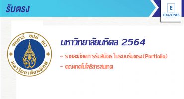 #รับตรง64 คณะเทคโนโลยีสารสนเทศ ม.มหิดล เปิดรับสมัครรอบรับตรง (Portfolio) ตั้งแต่วันที่ 15 ก.ย.- 30 ต.ค.นี้ EZ Webmaster August 17, 2020 คณะเทคโนโลยีสารสนเทศ มหาวิทยาลัยมหิดล เปิดรับสมัครเพื่อคัดเลือกบุคคลเข้าศึกษาต่อระดับปริญญาตรี ประเภทรับตรง Portfolio ประจำปีการศึกษา 2564 ตั้งแต่วันที่ 15 กันยายน – 30 ตุลาคม 2563 สาขาที่เปิดรับสมัคร สาขาวิชาเทคโนโลยีสารสนเทศและการสื่อสาร (หลักสูตรนานาชาติ) -วิทยาการคอมพิวเตอร์ -ระบบฐานข้อมูลและระบบเชิงปัญญา -ระบบเครือข่ายสื่อสาร -วิศวกรรมซอฟต์แวร์ -ระบบธุรกิจอิเล็กทรอนิกส์ -ระบบสื่อหลายแบบ -การจัดการระบบสารสนเทศ -เทคโนโลยีสารสนเทศเพื่อระบบสุขภาพ กำหนดการ -เปิดรับสมัครตั้งแต่วันที่ 15 กันยายน – 30 ตุลาคม 2563 -ประกาศรายชื่อผู้มีสิทธิ์สอบสัมภาษณ์ วันที่ 13 พฤศจิกายน 2563 -สอบสัมภาษณ์… Continue Reading