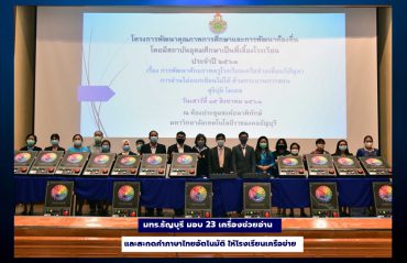 มทร.ธัญบุรี มอบ 23 เครื่องช่วยอ่านและสะกดคำภาษาไทยอัตโนมัติ ให้โรงเรียนเครือข่าย tui sakrapee August 15, 2020 เมื่อวันที่ 15 สิงหาคม 2563 รองศาสตราจารย์ ไพบูลย์ แย้มเผื่อน ที่ปรึกษามหาวิทยาลัยเทคโนโลยีราชมงคล (มทร.ธัญบุรี) มอบสื่อ “ชุดอาดุยอิโน่ทัชเกมการอ่านคำภาษาไทย” ให้กับโรงเรียนเครือข่าย 23 โรงเรียน กิจกรรมพัฒนาครูกลุ่มสาระการเรียนรู้ภาษาไทย ตามกระบวนการ PLC แก้ปัญหาการอ่านไม่ออกเขียนไม่ได้ รูปแบบ สุ จิ ปุ ลิ โมเดล ระดับประถมศึกษา ในโครงการพัฒนาคุณภาพการศึกษาและการพัฒนาท้องถิ่นโดยมีสถาบันอุดมศึกษาเป็นพี่เลี้ยงโรงเรียนเครือข่ายเพื่อการพัฒนาอุดมศึกษาภาคกลางตอนบน ณ ห้องประชุมสงค์ธนาพิทักษ์ อาคารเฉลิมพระเกียรติ48 พระชันษาฯ มหาวิทยาลัยเทคโนโลยีราชมงคล (มทร.) ธัญบุรี ผู้ช่วยศาสตราจารย์ ดร.สมหมาย ผิวสอาด อธิการบดีมหาวิทยาลัยเทคโนโลยีราชมงคลธัญบุรี ได้ให้การส่งเสริม สนับสนุน ศูนย์นวัตกรรมและเทคโนโลยีการเรียนรู้ คณะครุศาสตร์อุตสาหกรรม… Continue Reading