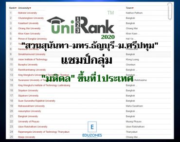 Unirank 2020 จัดอันดับ “สวนสุนันทา-มทร.ธัญบุรี-ม.ศรีปทุม”..แชมป์กลุ่ม”มหิดล” ขึ้นที่1ประเทศ tui sakrapee July 30, 2020 Unirank 2020 จัดอันดับ สวนสุนันทา-มทร.ธัญบุรี-ม.ศรีปทุม..แชมป์กลุ่ม ม.มหิดลขึ้นที่1ประเทศ ………………… เว็บไซต์จัดอันดับสถาบันการศึกษา 4Icu หรือ “Unirank” ประกาศการจัดอันดับสถาบันการศึกษาในประเทศไทย ปี 2020 เดือนกรกฎาคม “Unirank” Top Universities in Thailand 2020 Thai University Ranking ผลปรากฏว่า อันดับปี 2020 ช่วงกลางปีเดือนกรกฎาคมนี้ มหาวิทยาลัยมหิดล ขึ้นครองที่ 1 ของประเทศไทย โดยมีอันดับ 2 คือ จุฬาฯ และม.เกษตรศาสตร์ ตามมาเป็นอันดับ 3 25 อันดับแรกของประเทศไทย มหาวิทยาลัยราชภัฏ “สวนสุนันทา”… Continue Reading