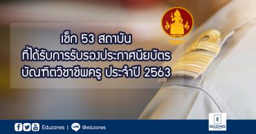 เช็ก 53 สถาบันที่ได้รับการรับรองประกาศนียบัตรบัณฑิตวิชาชีพครู ประจำปี 2563 EZ Webmaster July 12, 2020 ในการประชุม ครั้งที่ 4/2563 เมื่อวันที่ 15 มิถุนายน 2563 ที่ผ่านมาทางคณะกรรมการคุรุสภา ได้มีมติในการรับรองหลักสูตรประกาศนียบัตรบัณฑิตวิชาชีพครู เพิ่มเติม จำนวน 1 แห่ง ได้แก่ ประกาศนียบัตรบัณฑิต สาขาวิชาชีพครู หลักสูตรปรับปรุง พ.ศ. 2562 ของมหาวิทยาลัยราชภัฏอุบลราชธานี โดยมีแผนการรับนักศึกษา จำนวน 180 คน ดังนั้น ในปี 2563 นี้ จึงมีสถาบันที่ได้รับการรับรองประกาศนียบัตรบัณฑิตวิชาชีพครู ประจำปี 2563 จำนวน 53 แห่ง ได้แก่ 1) มหาวิทยาลัยศรีนครินทรวิโรฒ (90 คน) 2)… Continue Reading