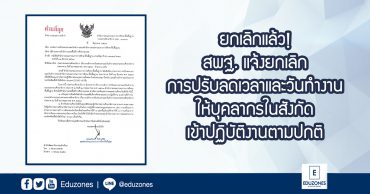 ยกเลิกแล้ว! สพฐ. แจ้งยกเลิกการปรับลดเวลาและวันทำงาน ให้บุคลากรในสังกัดเข้าปฏิบัติงานตามปกติ EZ Webmaster June 6, 2020 เมื่อวันที่ 5 มิถุนายน 2563 ที่ผ่านมา ทางสำนักงานคณะกรรมการการศึกษาขั้นพื้นฐาน ได้มีหนังสือแจ้งถึง ผู้อำนวยการสำนักงานเขตพื้นที่การศึกษาทุกเขต เรื่อง ยกเลิกการปรับลดเวลาและวันทำงานของสำนักงานคณะกรรมการการศึกษาขั้นพื้นฐาน ตามที่ทางสำนักงานคณะกรรมการการศึกษาขั้นพื้นฐาน กระทรวงศึกษาธิการ ได้มีประกาศเรื่อง การปรับลดเวลายกเลิกการปรับลดเวลาและวันทำงานของสำนักงานคณะกรรมการการศึกษาขั้นพื้นฐาน เมื่อวันที่ 31 พฤษภาคม 2563 ที่ผ่านมา เพื่อเป็นแนวทางปฏิบัติแก่บุคลากรในช่วงสถานการณ์ COVID-19 นั้น ขณะนี้ได้มีประกาศยกเลิกการปรับลดเวลาและวันทำงานของสำนักงานคณะกรรมการการศึกษาขั้นพื้นฐาน แล้ว เมื่อ วันที่ 29 พฤษภาคม 2563 ที่ผ่านมา โดยทั้งนี้ทางสำนักงานคณะกรรมการการศึกษาขั้นพื้นฐานได้ขอให้สำนักงานเขตพื้นที่การศึกษาทุกเขตดำเนินการแจ้งบุคลากรและสถานศึกษาในสังกัด ดังนี้ 1.แจ้งบุคลากรในสังกัดสำนักงานเขตพื้นที่การศึกษาทุกเขตมาปฏิบัติงาน ณ สถานที่ทำงานตามปกติ ตามประกาศกระทรวงศึกษาธิการเรื่องยกเลิกการปรับลดเวลาและวันทำงานของกระทรวงศึกษาธิการประกาศณวันที่ 19 พฤษภาคมพ.ศ 2563… Continue Reading
