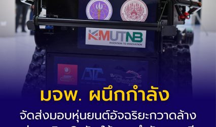 นักศึกษาครู-อาจารย์มหาวิทยาลัย มจพ. ผนึกกำลัง วปอ.67 หมู่สิงโต ส่งมอบหุ่นยนต์อัจฉริยะกวาดล้างทุ่นระเบิด 3 ตัว ให้กับกองกำลังสุรนารี ใช้งานจริงและเพิ่มความปลอดภัยให้กำลังพล มจพ. ผนึกกำลัง วปอ.67 หมู่สิงโต ส่งมอบหุ่นยนต์อัจฉริยะกวาดล้างทุ่นระเบิด 3 ตัว ให้กับกองกำลังสุรนารี ใช้งานจริงและเพิ่มความปลอดภัยให้กำลังพล ศ.ดร. ธานินทร์ ศิลป์จารุ อธิการบดี มหาวิทยาลัยเทคโนโลยีพระจอมเกล้าพระนครเหนือ (มจพ.) และคณะผู้บริหารให้การต้อนรับ นักศึกษา วปอ.67…