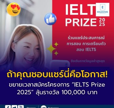 กิจกรรมBlogนักศึกษานักเรียน ถ้าคุณชอบแชร์นี่คือโอกาส! “บริติช เคานซิล” ขยายเวลารับสมัครโครงการ “IELTS Prize 2025” ถึง 31 ธ.ค. นี้ ลุ้นชิงรางวัลรวม 100,000 บาท ถ้าคุณชอบแชร์นี่คือโอกาส! “บริติช เคานซิล” ขยายเวลารับสมัครโครงการ “IELTS Prize 2025” ถึง 31 ธ.ค. นี้ ลุ้นชิงรางวัลรวม 100,000…