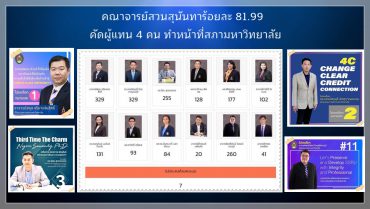 คณาจารย์สวนสุนันทาร้อยละ 81.99 คัดผู้แทน 4 คน ทำหน้าที่สภามหาวิทยาลัย tui sakrapee May 20, 2020 คณะกรรมการการเลือกตั้งกรรมการสภามหาวิทยาลัยจากคณาจารย์ประจำ มหาวิทยาลัยราชภัฏสวนสุนันทา เปิดเผยว่า จากการที่ได้กำหนดให้มีการเลือกตั้งกรรมการสภามหาวิทยาลัยประเภทผู้แทนคณาจารย์ โดยผู้มีสิทธิ์ลงคะแนนเลือกตั้งนั้นจะต้องเป็นคณาจารย์ประจำที่ได้ทำการสอนในมหาวิทยาลัยราชภัฏสวนสุนันทามาแล้วไม่น้อยกว่าสองปี นับถึงวันเลือกตั้ง และอยู่ปฏิบัติหน้าที่ราชการในวันเลือกตั้ง โดยลงคะแนนด้วยวิธีการทางอิเล็กทรอนิกส์ ในวันอังคารที่ 19 พฤษภาคม 2563 ตั้งแต่เวลา 09.00 – 15.00 น. ผลปรากฏว่า มีผู้ใช้สิทธิ์ทั้งหมด 660 คน จากจำนวนผู้มีสิทธิ์เลือกตั้ง 805 คน คิดเป็นร้อยละ 81.99 โดยผลการเลือกตั้งได้ผู้แทนคณาจารย์เพื่อทำหน้าที่ในสภามหาวิทยาลัย จำนวน 4 คน ดังนี้ 1.อาจารย์สกุล จริยาแจ่มสิทธิ์ 329 คะแนน 2.อาจารย์ ดร.เจตน์สฤษฎิ์ อังศุกาญจนกุล 329 คะแนน 3.อาจารย์พุทธิวัฒน์ ไวยวุฒิธนาภูมิ… Continue Reading