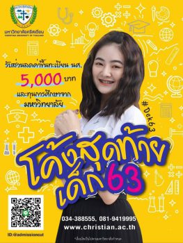 สำหรับน้องๆ เด็ก 63 โอกาสดีๆ มาถึงแล้ว กับโค้งสุดท้าย ม.คริสเตียน จัดโปรโมชั่นลดภาระช่วง Covid-19 EZ Webmaster May 14, 2020 สำหรับน้องๆ เด็ก 63 โค้งสุดท้ายของการเลือกสถาบันเพื่อเรียนต่อในระดับอุดมศึกษา โอกาสดีๆ มาถึงแล้ว กับโค้งสุดท้าย มหาวิทยาลัยคริสเตียน จัดโปรโมชั่นลดภาระช่วง Covid-19 ให้กับน้องๆ ที่สมัครและผ่านสัมภาษณ์ ชำระค่าขึ้นทะเบียนนักศึกษา เพียง 5,000 จากเดิม 10,000 บาท พร้อมรับสิทธิ์ทุนการศึกษาของมหาวิทยาลัยทันที !!! สมัครออนไลน์ได้ที่ https://www.christian.ac.th/ #มหาวิทยาลัยคริสเตียน #เด็กคริสเตียน #Dek63 #TCAS63 #รับตรง63 (เงื่อนไขเป็นไปตามที่มหาวิทยาลัยกำหนด) Continue Reading