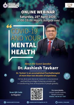 สถาบันคานธี ม.รังสิต จัดกิจกรรม Online Webinar EZ Webmaster April 23, 2020 สถาบันคานธี มหาวิทยาลัยรังสิต จัดกิจกรรมฟรี Online Webinar เรื่อง COVID-19 AND YOUR MENTAL HEALTH ในวันเสาร์ที่ 25 เมษายน 2563 เวลา 17.00 – 19.00 น. โดยได้รับเกียรติจาก Dr. Aashiesh Tavkarr, Senior Expert and Psychotherapist เป็นวิทยากรบรรยาย ทั้งนี้ ผู้ที่สนใจเข้าร่วมกิจกรรมสามารถลงทะเบียนได้ที่ https://bit.ly/3bsNnad หรือสอบถามรายละเอียดเพิ่มเติมได้ที่ สถาบันคานธี มหาวิทยาลัยรังสิต Email: gandhi.institute@rsu.ac.th หรือ Mr. Sanjay Kumar โทร. 084 327 7267 Continue Reading