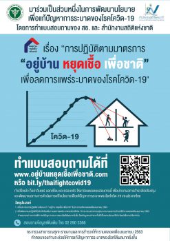 ขอความร่วมมือคนไทย! ร่วมตอบแบบสอบถาม เพื่อพัฒนานโยบายในการแก้ปัญหาการระบาดของไวรัสโควิด-19 โดยกระทรวงสาธารณสุขและสำนักงานสถิติแห่งชาติ EZ Webmaster April 10, 2020 มาร่วมเป็นส่วนหนึ่งในการพัฒนานโยบายเพื่อแก้ปัญหาการระบาดของโรคโควิด-19 โดยการทำแบบสอบถามเรื่องการปฏิบัติตามมาตรการ “อยู่บ้าน หยุดเชื้อ เพื่อชาติ” เพื่อลดการแพร่ระบาดของโรคโควิด-19 ที่ www.อยู่บ้านหยุดเชื้อเพื่อชาติ.com หรือที่ bit.ly/ThaiFightCovid19 ทำเสร็จอย่าลืมบอกเพื่อน และครอบครัว ให้มาร่วมตอบแบบสอบถามนี้ เพื่อนำเอาผลการสำรวจไปปรับปรุง และพัฒนาแนวทางการดำเนินการแก้ไขนโยบายเพื่อแก้ปัญหาการระบาดของโรคโควิด-19 ของประเทศไทย Continue Reading