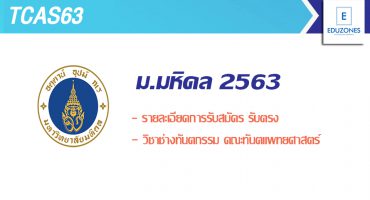 รับตรง 63 ช่างทันตกรรม ม.มหิดล เรียนแค่ 2 ปี พร้อมมีงานรองรับ! EZ Webmaster April 4, 2020 โรงเรียนเทคโนโลยี คณะทันตแพทยศาสตร์ มหาวิทยาลัยมหิดล เปิดรับนักศึกษาเข้าศึกษาต่อใน หลักสูตรประกาศนียบัตรวิชาช่างทันตกรรม (หลักสูตร 2 ปี) ประจำปีการศึกษา 2563 เปิดรับสมัครคัดเลือก (ทางออนไลน์เท่านั้น) ตั้งแต่วันที่ 16 มีนาคม – 30 เมษายน 2563 ทางเว็บไซต์ https://dtedu.dt.mahidol.ac.th/portal/index.php คุณสมบัติผู้สมัครเข้าศึกษา –เป็นผู้สำเร็จการศึกษา ชั้นมัธยมศึกษาตอนปลาย (ม.6) หรือเทียบเท่า -เป็นผู้มีสัญชาติไทย อายุไม่ต่ำกว่า 16 ปี และไม่เกิน 35 ปีบริบูรณ์ -ไม่เป็นโรคติดต่อหรือโรคที่เป็นอุปสรรคต่อการเรียน -มีความประพฤติดี -ร่างกายปกติ ไม่เป็นบุคคลตาบอดสี เอกสารประกอบการรับสมัคร… Continue Reading