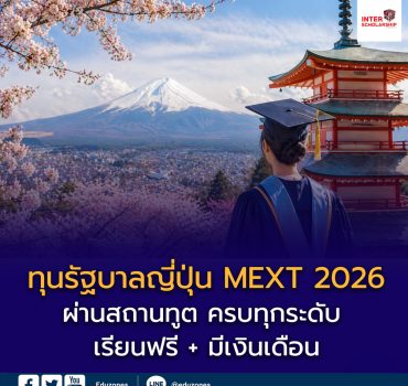 Blogทุนดีดีนักศึกษา ทุนรัฐบาลญี่ปุ่น MEXT 2026 ผ่านสถานทูต ครบทุกระดับ เรียนฟรี + มีเงินเดือน 🇯🇵 เปิดสมัครแล้ว! ทุนรัฐบาลญี่ปุ่น MEXT 2026 ผ่านสถานทูต ครบทุกระดับ เรียนฟรี + มีเงินเดือน ข่าวดีสำหรับนักเรียนไทยที่วางแผนเรียนต่อประเทศญี่ปุ่น ล่าสุด กระทรวงศึกษาธิการ…