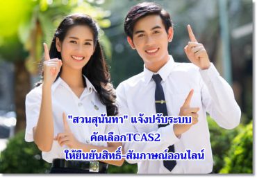 “สวนสุนันทา” แจ้งปรับระบบคัดเลือกTCAS2 ให้ยืนยันสิทธิ์-สัมภาษณ์ออนไลน์ tui sakrapee March 27, 2020 มหาวิทยาลัยราชภัฏสวนสุนันทา ประกาศแจ้งการปรับระบบการทำงานของการสอบคัดเลือกบุคคลเข้าศึกษาระดับปริญญาตรี ภาคปกติ ประจำปีการศึกษา 2563 รอบที่ 2 ระบบโควตา (ความสามารถทางวิชาการ ความสามารถพิเศษ และทุนเพชรสุนันทา) กำหนดวันยืนยันสิทธิ์พร้อมสัมภาษณ์ผ่านสื่อออนไลน์ 1.ผู้สมัครโควตา (ความสามารถทางวิชาการ) สาขาวิชาที่จำนวนผู้สมัครเป็นไปตามแผนรับ มหาวิทยาลัยราชภัฏสวนสุนันทาให้สิทธิ์นักศึกษาเป็นผู้ผ่านการคัดเลือก และมีสิทธิ์เข้าศึกษา โดยผู้สมัครทำการยืนยันสิทธิ์ในระบบ TCAS ที่ http://student.mytcas.com.th ในวันที่ 22-23 เมษายน 2563 (เท่านั้น) 2.ผู้สมัครโควตา (ความสามารถพิเศษด้านดนตรี ด้านศิลปะ ด้านนาฏศิลป์และการละคร) สาขาวิชาที่จำนวนผู้สมัครเป็นไปตามแผนรับ มหาวิทยาลัยราชภัฏสวนสุนันทาให้สิทธิ์นักศึกษาเป็นผู้ผ่านการคัดเลือก และมีสิทธิ์เข้าศึกษา โดยผู้สมัครทำการยืนยันสิทธิ์ในระบบ TCAS ที่ http://student.mytcas.com.th ในวันที่ 22-23 เมษายน 2563 (เท่านั้น) 3. ผู้สมัครโควตา (ความสามารถทางวิชาการ)… Continue Reading
