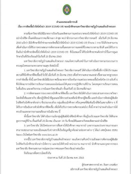 คำแถลงของอธิการบดี เรื่อง การติดเชื้อไวรัสโคโรน่า 2019 (COVID-19) ของนักศึกษามหาวิทยาลัยราชภัฏบ้านสมเด็จเจ้าพระยา EZ Webmaster March 25, 2020 คำแถลงของอธิการบดี เรื่อง การติดเชื้อไวรัสโคโรน่า 2019 (COVID-19) ของนักศึกษามหาวิทยาลัยราชภัฏบ้านสมเด็จเจ้าพระยา Continue Reading