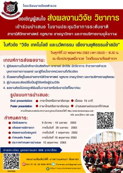 รร.นายร้อยตำรวจ เปิดรับผลงานวิจัย วิชาการ ภายใต้หัวข้อ “วิจัย เทคโนโลยี และนวัตกรรม เพื่องานยุติธรรมล้ำสมัย” EZ Webmaster March 17, 2020 ขอเชิญผู้สนใจส่งผลงานวิจัย วิชาการ เพื่อเข้าร่วมประชุมวิชาการและนำเสนอผลงานวิจัยระดับชาติ สาขานิติวิทยาศาสตร์ กฎหมาย อาชญาวิทยา และการบริหารงานยุติธรรม ภายใต้หัวข้อ “วิจัย เทคโนโลยี และนวัตกรรม เพื่องานยุติธรรมล้ำสมัย” ซึ่งจัดขึ้นในวันศุกร์ที่ 22 พฤษภาคม 2563 เวลา 08.00-16.30 น. ณ ห้องประชุมเตมียาเวส โรงเรียนนายร้อยตำรวจ สำหรับผู้ที่สนใจสามารถลงทะเบียนเข้าร่วมประชุมและส่งบทความได้ ตั้งแต่บัดนี้จนถึงวันที่ 10 เมษายน 2563 โดยมีค่าใช้จ่ายในการลงทะเบียน (บุคลากรภายนอก) จำนวนเรื่องละ 800 บาท ทั้งนี้ สามารถลงทะเบียนออนไลน์ได้ที่ shorturl.at/uyDOZ และดูรายละเอียดเพิ่มเติมเกี่ยวกับเกณฑ์การส่งผลงาน รูปแบบการนำเสนอและกำหนดการได้ที่ http://www.forensicrpca.com สอบถามเพิ่มเติมโทร. 034-311-110, 08-9566-9678 หรือ Forensic.sci2@gmail.com Continue Reading