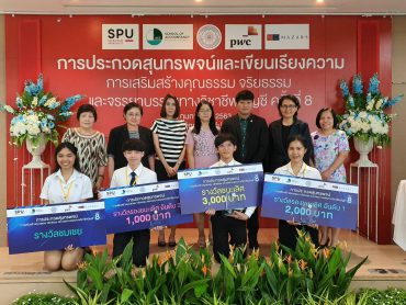 นศ. CIBA มธบ.เจ๋ง คว้าชนะเลิศประกวดเรียงความ-อันดับ2สุนทรพจน์ ด้านวิชาชีพบัญชี ครั้งที่ 8 EZ Webmaster March 17, 2020 ทุกกิจกรรม ล้วนเป็นเวทีแห่งโอกาสและการเรียนรู้ของนักศึกษา วิทยาลัยบริหารธุรกิจนวัตกรรมและการบัญชี (CIBA) มหาวิทยาลัยธุรกิจบัณฑิตย์ (มธบ.)ที่นอกจากมุ่งการจัดการเรียนการสอน ให้เชี่ยวชาญทั้งปฎิบัติ รู้ลึกทั้งด้านทฤษฎี วิชาการในวิชาชีพแล้วนั้น ยังส่งเสริมให้นักศึกษาได้มีคุณธรรมจริยธรรมในวิชาชีพของตน ล่าสุด CIBA มธบ. ได้ส่งเสริมให้นักศึกษาเข้าร่วม โครงการประกวดสุนทรพจน์ และเขียนเรียงความ “การเสริมสร้างคุณธรรม จริยธรรม และจรรยาบรรณทางวิชาชีพบัญชี” ครั้งที่ 8 จัดโดยคณะอนุกรรมการวิชาการบัญชี คณะกรรมการฝ่ายวิชาการและประกันคุณภาพการศึกษา สมาคมสถาบันอุดมศึกษาเอกชนแห่งประเทศไทย ถือเป็นการเปิดโอกาสให้นักศึกษาสาขาวิชาการบัญชีในสถาบันอุดมศึกษาเอกชนได้ใช้ทักษะการใช้ภาษาไทย ถ่ายทอดความคิดและมุมมองของตนเองเกี่ยวกับคุณธรรม จริยธรรมและจรรยาบรรณทางวิชาชีพบัญชี ด้วยความมุ่งหวังจุดประกายสร้างจิตสำนึกให้แก่นักศึกษา โดยการแข่งขันครั้งนี้ น.ส.ผกามาศ ขุนเศษ นักศึกษาชั้นปีที่ 3 สาขาวิชาการบัญชี CIBA มธบ.เป็นหนึ่งในทีมที่ได้รับรางวัลชนะเลิศอันดับ 1 ในการประกวดเขียนเรียงความ และ น.ส.กานติมา คุ้มวงษ์ นักศึกษาชั้นปีที่ 3 สาขาวิชาการบัญชี CIBA มธบ. ได้รับรางวัลรองชนะเลิศอันดับ2 ในการประกวดสุนทรพจน์ น.ส.ผกามาศ ขุนเศษ (แนน) นักศึกษาชั้นปีที่ 3 สาขาวิชาการบัญชี CIBA มธบ.กล่าวว่า ดีใจมากที่ได้รับรางวัลเพราะเป็นครั้งแรกที่ได้เข้าร่วมการประกวด ซึ่งตนเองได้เห็นโครงการนี้มาตลอด แต่ปีนี้สนใจสมัครเข้าร่วมเพราะต้องการเปิดโอกาส และเป็นความท้าทายของตัวเอง อีกทั้งประเด็นที่ให้เขียนเรียงความนั้น เป็นประเด็นที่น่าสนใจ… Continue Reading