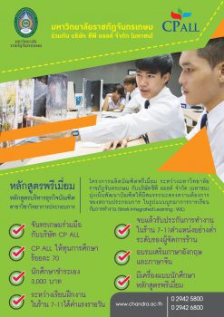 จันทรเกษม จับมือ ซีพี ออลล์ เปิดหลักสูตรพรีเมี่ยม EZ Webmaster February 27, 2020 มหาวิทยาลัยราชภัฏจันทรเกษม จับมือ บริษัท ซีพี ออลล์ จำกัด (มหาชน) เปิดรับสมัครนักศึกษาใหม่ภาคปกติ ระดับปริญญาตรี หลักสูตรบริหารธุรกิจบัณฑิต (พรีเมี่ยม) สาขาวิชาวิทยาการประกอบการ เรียนรู้ทั้งภาคทฤษฎีและปฏิบัติ ฝึกงานระหว่างเรียนกับร้าน 7–ELEVEN มีรายได้ระหว่างฝึกงาน จบแล้วทำงานกับบริษัท ซีพี เป็นเวลา 2 ปี เงินเดือนขั้นต่ำ 20,000 บาท ค่าเล่าเรียนภาคเรียนละ 20,000 บาท โดยบริษัท ซีพี ให้ทุนการศึกษา 14,000 บาท นักศึกษาชำระภาคเรียนแรก 3,000 บาท มหาวิทยาลัยให้ทุนภาคเรียนแรกอีก 3,000 บาท และภาคเรียนต่อไปสำหรับนักศึกษาที่มีผลการเรียน ตั้งแต่ 3.00 ขึ้นไปในแต่ละภาคเรียน… Continue Reading