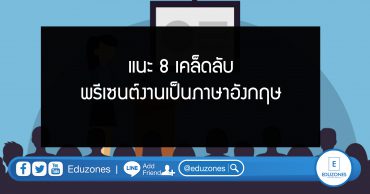 แนะ 8 เคล็ดลับพรีเซนต์งานเป็นภาษาอังกฤษ EZ Webmaster February 24, 2020 ในปัจจุบันทั้งในการเรียนและการทำงานก็มีการใช้ภาษาอังกฤษที่มากขึ้น ทำให้ทักษะการพูดสื่อสารด้วยภาษาอังกฤษนั้นเป็นสิ่งสำคัญ แต่มากกว่าการสื่อสารด้วยการพูดในการเรียนและการทำงานนั้นคือการต้อง “พรีเซนต์งานเป็นภาษาอังกฤษ” เพราะการนำเสนองานหรือการพูดต่อหน้าคนหลายๆ คนนั้น ต่อให้เป็นคนที่สื่อสารด้วยภาษาอังกฤษเป็นประจำ หรือนักพูดเก่งๆ เองก็ไม่ใช่เรื่องที่ง่าย วันนี้เราจึงมี 8 เคล็ดลับในการพรีเซนต์งานเป็นภาษาอังกฤษให้ดึงดูดคนฟัง และสามารถพรีเซนต์งานได้แบบผ่านฉลุยมาฝากกันค่ะ 1. Do Your Homework ทำการบ้านก่อนการพรีเซนต์ไปให้พร้อม โดยสิ่งที่เราควรจะเตรียมในการเตรียมพรีเซนเทชั่น ได้แก่ – พรีเซนเทชั่นนี้เกี่ยวกับอะไร? และเป้าหมายในการนำเสนอ – ผู้ฟังเป็นแบบไหน? – หาข้อความหลัก หรือประโยคหลัก ของพรีเซนเทชั่น – วางโครงสร้างของพรีเซนเทชั่น ทั้ง introduction เนื้อหาหลัก และสรุป – ใช้คำศัพท์พื้นฐาน เพื่่อให้ง่ายต่อการเข้าใจ ของทั้งผู้ฟัง และผู้พูดเอง… Continue Reading