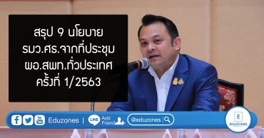 สรุป 9 นโยบายรมว.ศธ จากที่ประชุมผอ.สพท.ทั่วประเทศ ครั้งที่ 1/2563 EZ Webmaster January 31, 2020 เมื่อวันที่ 29 มกราคม 2563 ที่ผ่านมา มีการจัดประชุมผู้อำนวยการสำนักงานเขตพื้นที่การศึกษาทั่วประเทศ ครั้งที่ 1/2563 ณ โรงแรมปรินซ์ พาเลซ กรุงเทพฯ โดยครั้งนี้มี นายณัฏฐพล ทีปสุวรรณ รัฐมนตรีว่าการกระทรวงศึกษาธิการ เป็นประธานเปิดการประชุม พร้อมด้วย นายอำนาจ วิชยานุวัติ เลขาธิการคณะกรรมการการศึกษาขั้นพื้นฐาน เป็นผู้กล่าวรายงาน รวมถึงผู้บริหารระดับสูง อาทิ นางวัฒนาพร ระงับทุกข์ รองเลขาธิการ กพฐ., ว่าที่ร้อยตรี ธนุ วงษ์จินดา ผู้ช่วยเลขาธิการ กพฐ., นายวัลลพ สงวนนาม ผู้ช่วยเลขาธิการ กพฐ., นายสุรศักดิ์ อินศรีไกร ที่ปรึกษาด้านนโยบายและแผน, นายธีร์… Continue Reading