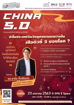 รับฟังฟรี !!! DPU X มธบ. จัดเสวนา China 5.0 ล้วงลึกปัจจัยดัน “จีน” ก้าวสู่ ‘เบอร์ 2 ของโลก’ EZ Webmaster January 20, 2020 สถาบันเพื่อพัฒนาความเป็นผู้ประกอบการและบุคลากรแห่งอนาคต (DPU X) มหาวิทยาลัยธุรกิจบัณฑิตย์ (มธบ.) ร่วมกับคณะศิลปศาสตร์และวิทยาลัยนวัตกรรมด้านเทคโนโลยี&วิศวกรรมศาสตร์ (CITE) จัดเสวนา ภายใต้หัวข้อ “China 5.0 วัฒนธรรมจีนกับการพัฒนาเทคโนโลยี” ร่วมรับฟังถึงสาเหตุและปัจจัยที่ทำให้ประเทศจีนพัฒนาอย่างก้าวกระโดดทางด้านเศรษฐกิจ การเมือง และเทคโนโลยี จนกลายเป็นประเทศมหาอำนาจอันดับที่ 2 ของโลก และรับฟังถึงทิศทางและวัฒนธรรมจีนที่เอื้อต่อการพัฒนาเทคโนโลยี โดยมีดร.อาร์ม ตั้งนิรันดร ผู้เชี่ยวชาญด้านยุทธศาสตร์ไทย-จีน และผู้เขียนหนังสือ “China 5.0 สีจิ้นผิง เศรษฐกิจยุคใหม่ และแผนการใหญ่ AI” เป็นวิทยากร ทั้งนี้งานดังกล่าวจัดขึ้นวันที่ 23 มกราคมนี้ เวลา 13.00-15.00น. ณ DPU X Space มหาวิทยาลัยธุรกิจบัณฑิตย์ ผู้สนใจเข้าร่วมฟังเสวนาฟรี โดยสอบถามเพิ่มเติมได้ที่ โทร.02-9547300 ต่อ 208,209 หรือ 061-4905858 และ FB:@dpuxyourfuture/www.dpux.ac.th Continue Reading