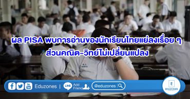ผล PISA พบการอ่านของนักเรียนไทยแย่ลงเรื่อย ๆ ส่วนคณิต-วิทย์ไม่เปลี่ยนแปลง handy hotspurs December 6, 2019 ผลการประเมิน PISA รอบปี 2018 จาก 79 ประเทศทั่วโลก พบว่า ไทยยังคงได้คะแนนต่ำกว่าค่าเฉลี่ยในการสอบวัดความรู้ทั้ง 3 ด้าน คือ การอ่าน คณิตศาสตร์ และวิทยาศาสตร์ ขณะที่ 4 เมืองใหญ่ของจีน แซงหน้าขึ้นมาครองอันดับ 1 แทนสิงคโปร์ สถาบันส่งเสริมการสอนวิทยาศาสตร์และเทคโนโลยี (สสวท.) แนะควรพัฒนาความสามารถด้านการอ่านของนักเรียนไทยอย่างเร่งด่วน หลังคะแนนลดลงต่อเนื่อง โปรแกรมประเมินสมรรถนะนักเรียนมาตรฐานสากล (Programme for International Student Assessment หรือ PISA) ริเริ่มโดยองค์การเพื่อความร่วมมือทางเศรษฐกิจและการพัฒนา (Organisation for Economic Co-operation and Development หรือ OECD)… Continue Reading