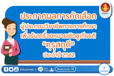 คุรุสภาประกาศผลการคัดเลือกผู้ประกอบวิชาชีพทางการศึกษา “คุรุสดุดี” ประจำปี 2562 EZ Webmaster December 6, 2019 ดร.วัฒนาพร ระงับทุกข์ รองเลขาธิการสภาการศึกษา ปฏิบัติหน้าที่ในตำแหน่งเลขาธิการคุรุสภา กล่าวว่า ตามที่ คุรุสภาได้ดำเนินการยกย่องเชิดชูเกียรติผู้ประกอบวิชาชีพทางการศึกษา เพื่อประกาศเกียรติคุณให้เป็นที่ประจักษ์แก่สาธารณชน ให้มีเกียรติและศักดิ์ศรีเป็นที่ยอมรับของสังคม โดยคัดเลือกผู้ประกอบวิชาชีพทางการศึกษาที่ปฏิบัติตนตามจรรยาบรรณของวิชาชีพจนเป็นแบบอย่างที่ดี มีความเสียสละและอุทิศตนเพื่อประโยชน์แก่วิชาชีพตลอดระยะเวลาของการปฏิบัติงาน ให้มีขวัญและกำลังใจที่จะปฏิบัติงานในหน้าที่ให้เกิดประโยชน์แก่ศิษย์ยิ่งๆ ขึ้นไป ให้ได้รับเครื่องหมายเชิดชูเกียรติ “คุรุสดุดี” ประจำปี 2562 บัดนี้ คณะกรรมการมาตรฐานวิชาชีพมีมติอนุมัติรายชื่อผู้ประกอบวิชาชีพทางการศึกษาเพื่อรับเครื่องหมายเชิดชูเกียรติ “คุรุสดุดี” ประจำปี 2562 จำนวน 1,047 คน เรียบร้อยแล้ว และเข้ารับรางวัลในช่วงสัปดาห์วันครู ระหว่างวันที่ 16 – 17 มกราคม 2563 click ขอขอบคุณข้อมูลจาก : http://www.moe.go.th Continue Reading