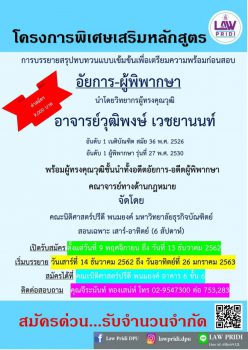 คณะนิติศาสตร์ฯ DPU ชวนติวเข้มเตรียมสอบ “อัยการ-ผู้พิพากษา” EZ Webmaster November 12, 2019 คณะนิติศาสตร์ปรีดี พนมยงค์ มหาวิทยาลัยธุรกิจบัณฑิตย์ ขอเชิญชวนผู้สนใจร่วมอบรม หลักสูตรการบรรยายสรุปทบทวนแบบเข้มเพื่อเตรียมตัวสอบ “อัยการ-ผู้พิพากษา” เพื่อเป็นการเตรียมความพร้อมก่อนสอบอัยการ หรือผู้พิพากษา ให้มีความรู้ความเข้าใจในประเด็นกฎหมายสำคัญ ทบทวนความรู้ก่อนสอบ ทำให้เพิ่มโอกาสในการสอบได้มากยิ่งขึ้น นำโดยวิทยากรผู้ทรงคุณวุฒิ อาจารย์วุฒิพงษ์ เวชยานนท์ อันดับ 1 เนติบัณฑิต สมัยที่ 36 อันดับ 1 ผู้พิพากษา รุ่นที่ 27 พร้อมด้วยวิทยากรชั้นนำระดับประเทศ อดีตอัยการ ผู้พิพากษา คณาจารย์ผู้เชี่ยวชาญทางด้านกฎหมายอีกมากมาย ทั้งนี้ผู้เข้ารับฟังการบรรยายจะได้ทบทวนบทสรุปเสริมสร้างความรู้ทั้งส่วนที่เป็นหลัก ข้อยกเว้น และความทันสมัย ทำให้มีความรู้ลึก และเข้าใจในวิชากฎหมายที่จำเป็นต่อการสอบเป็นอัยการ หรือผู้พิพากษา ทั้งยังมีความมั่นใจในการสอบมากยิ่งขึ้น เปิดรับสมัครตั้งแต่วันนี้จนถึงวันที่ 13 ธันวาคม 2562 เริ่มบรรยายตั้งแต่วันเสาร์ที่ 14 ธันวาคม 2562 ถึงวันอาทิตย์ที่ 26 มกราคม… Continue Reading