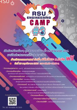 วิศวะ ม.รังสิต ชวนน้องม.ปลาย ทุกสายการเรียน ร่วมแคมป์เด็กเกียร์ (RSU ENGINEERING CAMP #3) EZ Webmaster November 4, 2019 วิทยาลัยวิศวกรรมศาสตร์ มหาวิทยาลัยรังสิต เปิดรับสมัครน้องๆ นักเรียนมัธยมศึกษาตอนปลายทุกสายการเรียน (ม.ปลาย/ ปวช./ ปวส.) ร่วม “แคมป์เด็กเกียร์ (RSU ENGINEERING CAMP #3)” เพื่อเปิดประสบการณ์กับ 9 สาขาวิชา ด้านวิศวกรรมศาสตร์ ในวันเสาร์ที่ 30 พฤศจิกายน 2562 ตั้งแต่เวลา 09.00-16.30 น. ณ อาคารวิษณุรัตน์ (อาคาร 5) มหาวิทยาลัยรังสิต กิจกรรมภายในแคมป์ ดังนี้ – วิศวกรรมการซ่อมบำรุงอากาศยาน: พวกเราช่างอากาศเราซ่อมได้ เปิดเครื่องยนต์ให้นักเรียนที่มาเข้าร่วมกิจกรรมได้ฝึกจับอุปกรณ์ในการซ่อมเครื่องยนต์ – วิศวกรรมไฟฟ้า: เปิดห้องปฏิบัติการวิศวกรรมไฟฟ้า – วิศวกรรมเครื่องกล: เครื่องยนต์กระป๋อง สร้างเครื่องยนต์สเตอร์ลิงจากกระป๋องน้ำ – วิศวกรรมยานยนต์: รถแข่งพลังลูกโป่ง สร้างรถจากขวดน้ำพลาสติกโดยใช้ลูกโป่งที่เป่าลมเป็นแหล่งกำเนิดพลังงาน – วิศวกรรมคอมพิวเตอร์: ปฏิบัติงาน IOT ทดลองต่อวงจร ใช้งานอุปกรณ์ IOT โปรแกรมบนมือถือ –… Continue Reading