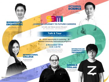 งานแนะแนวการศึกษารูปแบบใหม่ของมหิดล ครั้งแรกของการผนึกกำลังกันจาก 3 คณะ ได้แก่ คณะวิทยาศาสตร์, คณะวิศวกรรมศาสตร์, คณะเทคโนโลยีสารสนเทศและการสื่อสาร และวิทยาลัยนานาชาติมหิดล EZ Webmaster November 1, 2019 พบกับงานแนะแนวการศึกษารูปแบบใหม่ของมหิดล ครั้งแรกของการผนึกกำลังกันจาก 3 คณะ ได้แก่ คณะวิทยาศาสตร์ (Science) , คณะวิศวกรรมศาสตร์ (Engineering), คณะเทคโนโลยีสารสนเทศและการสื่อสาร (ICT) และวิทยาลัยนานาชาติมหิดล (MUIC) มาแล้วจะได้อะไร? ได้ข้อมูลหลักสูตรนานาชาติ มหาวิทยาลัยมหิดลแบบเคลียร์ชัด จัดเต็ม! ได้รู้จักอาชีพและทักษะแห่งอนาคต เทรนด์อาชีพไหนมาแรง แซงโค้ง ได้แรงบันดาลใจในการเรียน มุ่งสู่เป้าหมายอาชีพแห่งอนาคต Talk & Tour สุด exclusive จากคุณจิระวัฒน์ ภูมิศรีแก้ว ผู้จัดการฝ่ายนโยบายและความสัมพันธ์ภาครัฐ บริษัท กูเกิ้ล (ประเทศไทย) จำกัด และ “4 ตัวแทนอาชีพแห่งอนาคต” ศิษย์เก่ามหิดลฯ ที่จะมาแชร์ประสบการณ์ ในหัวข้อ “จากแพชชั่นสู่การงานอันเป็นที่รัก”… Continue Reading