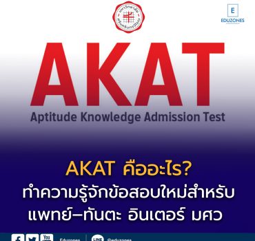 AKAT คืออะไร? ทำความรู้จักข้อสอบใหม่สำหรับแพทย์–ทันตะ อินเตอร์ มศว ฉบับสมบูรณ์ EZ WebmasterApril 27, 2026 AKAT คืออะไร? ทำความรู้จักข้อสอบใหม่สำหรับแพทย์–ทันตะ อินเตอร์ มศว ฉบับสมบูรณ์ ⚠️ DEK70–71 ที่อยากสอบรอบแรกของปีนี้ — หมดเขตสมัครสอบ 30 เมษายน 2568 นี้แล้ว! น้องๆ ที่ฝันอยากเรียนแพทย์หรือทันตะหลักสูตรนานาชาติที่ มศว… สสวท. ประกาศผลวิจัยสิ่งแวดล้อม GLOBE SRC 2026 ชูผลงาน “ดินแตงโม-ไลเคน-คุณภาพส้มโอ” คว้ารางวัลชนะเลิศ พร้อมเชิดชูครูต้นแบบสร้างแรงบันดาลใจวิทย์ EZ WebmasterApril 27, 2026 รองศาสตราจารย์ ดร.ธีระเดช เจียรสุขสกุล ผู้อำนวยการสถาบันส่งเสริมการสอนวิทยาศาสตร์และเทคโนโลยี (สสวท.) เป็นประธานในพิธีมอบรางวัลการประกวดผลงานวิจัยวิทยาศาสตร์สิ่งแวดล้อม “GLOBE Student Research Competition (GLOBE SRC) 2026” ซึ่งจัดขึ้นระหว่างวันที่ 23–24 เมษายน 2569 ณ โรงแรมแอมบาสซาเดอร์ กรุงเทพมหานคร พร้อมด้วย ดร.เขมวดี พงศานนท์ ผู้อำนวยการฝ่ายบริหารเครือข่ายและพัฒนาครู สสวท. ร่วมแสดงความยินดี เวทีที่เปิดโอกาสให้เยาวชนไทยได้นำเสนอผลงานวิจัยจากบริบทจริงในท้องถิ่น… สรุปสิ่งต้องรู้ TCAS70 หลังแถลงข่าว 26 เม.ย. ฟรีค่าสอบ–ปรับระบบพอร์ต–สอบกระดาษทั้งหมด EZ WebmasterApril 26, 2026 📣 สรุปสิ่งต้องรู้ TCAS70 หลังแถลงข่าว 26 เม.ย. ฟรีค่าสอบ–ปรับระบบพอร์ต–สอบกระดาษทั้งหมด หลังการแถลงข่าวระบบการคัดเลือกบุคคลเข้าศึกษาต่อในระดับอุดมศึกษา TCAS70 เมื่อวันที่ 26 เมษายน 2569 มีหลายประเด็นสำคัญที่นักเรียนรุ่น #dek70 ต้องรู้ เพื่อวางแผนเตรียมตัวล่วงหน้า 📌… ม.บูรพา เปิดรับ TCAS69 รอบ 3 Admission กว่า 3,000 ที่นั่ง ครอบคลุมหลายคณะยอดนิยม EZ WebmasterApril 25, 2026 📣 ม.บูรพา เปิดรับ TCAS69 รอบ 3 Admission กว่า 3,000 ที่นั่ง ครอบคลุมหลายคณะยอดนิยม มหาวิทยาลัยบูรพา ประกาศรับสมัครนักศึกษาใหม่ในระบบ TCAS69 รอบ 3 Admission ประจำปีการศึกษา… นักศึกษา แจกทุนเรียนจีนฟรี 100%! Guangxi Normal University เปิดรับนักศึกษาไทย ปี 2026 ครบทุกระดับ EZ WebmasterApril 27, 2026 🇨🇳 แจกทุนเรียนจีนฟรี 100%! Guangxi Normal University เปิดรับนักศึกษาไทย ปี 2026 ครบทุกระดับ โอกาสดีสำหรับนักเรียนไทยที่อยากเรียนต่อประเทศจีน ล่าสุด Guangxi Normal University ประกาศเปิดรับสมัครทุน 🎓 “ทุนรัฐบาลเขตปกครองตนเองกว่างซีจ้วง… โครงการ “AI for Teachers” ยกระดับทักษะครูไทยกว่า 160,000 คน หนุนการศึกษาไทยสู่อนาคตดิจิทัล EZ WebmasterApril 24, 2026 กรุงเทพฯ 24 เมษายน 2569 – กระทรวงศึกษาธิการ ร่วมกับไมโครซอฟท์ ประเทศไทย และภาคีเครือข่ายด้านการศึกษา ได้แก่ สำนักงานคณะกรรมการการศึกษาขั้นพื้นฐาน (สพฐ.) สำนักงานคณะกรรมการการอาชีวศึกษา (สอศ.) สถาบันส่งเสริมการสอนวิทยาศาสตร์และเทคโนโลยี (สสวท.) และสำนักงานพัฒนาธุรกรรมทางอิเล็กทรอนิกส์… มช. สุดปัง! ตั้งศูนย์ AI แห่งแรกในอาเซียน จับมือ