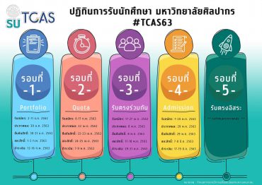 ปฎิทินการรับสมัครในระบบ TCAS63 ม.ศิลปากร EZ Webmaster October 23, 2019 รอบที่ 1 #Portfolio รับสมัคร 2-11 ธ.ค.62 รอบที่ 2 #โควตา รับสมัคร 6-17 ก.พ.63 รอบที่ 3 #รับตรงร่วมกัน รับสมัคร 17-27 เม.ย.63 รอบที่ 4 #รับกลางร่วมกัน รับสมัคร 7-20 พ.ค.63 รอบที่ 5 #รับตรงอิสระ ประกาศในภายหลัง เพิ่มเติมที่ https://www.admission.su.ac.th Continue Reading