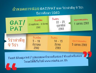 เนื้อหาการสอบ (Test Blueprint) รูปแบบและจำนวนข้อสอบ พร้อมทั้งตัวอย่างข้อสอบ GAT/PAT และ วิชาสามัญ 9 วิชา EZ Webmaster September 26, 2019 เนื้อหาการสอบ (Test Blueprint) รูปแบบและจำนวนข้อสอบ พร้อมทั้งตัวอย่างข้อสอบ #GAT/PAT และ #วิชาสามัญ 9 วิชา โหลดได้แล้วที่เว็บไซต์ #สทศ. GAT/PAT >>https://niets.or.th/th/catalog/view/246 วิชาสามัญ 9 วิชา >> https://niets.or.th/th/catalog/view/247 #dek63 Continue Reading
