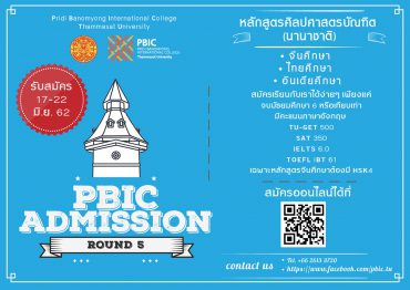 PBIC Announces Admission Round 5 EZ Webmaster June 20, 2019 PBIC Announces Admission Round 5 Bangkok, June 18, 2019 – Pridi Banomyong International College (PBIC) of Thammasat University announces “PBIC Admission Round 5”, in the curriculum of Chinese Studies, Indian Studies, and Thai Studies. Applicant must have completed Mattayom 6 or an… Continue Reading