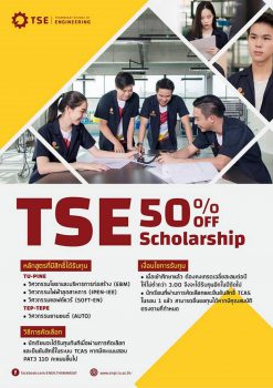 วิศวะฯ ธรรมศาสตร์ เปิดให้ทุนการศึกษา 50 เปอร์เซ็นต์ 4 หลักสูตร EZ Webmaster May 27, 2019 คณะวิศวกรรมศาสตร์ มหาวิทยาลัยธรรมศาสตร์ (Thammasart School of Engineering : TSE) เปิดรับสมัครผู้ที่สำเร็จการศึกษาชั้นมัธยมศึกษาตอนปลาย เข้ารับทุนคณะวิศวกรรมศาสตร์ 50% ของค่าธรรมเนียมหน่วยกิต ตลอดหลักสูตร สำหรับผู้ที่สมัครเข้าศึกษาต่อใน 4 หลักสูตร ได้แก่ วิศวกรรมโยธาและบริหารการก่อสร้าง (EBM) วิศวกรรมไฟฟ้าอุตสาหการ (IPEN-IEE) วิศวกรรมซอฟต์แวร์ (SOFT-EN) และวิศวกรรมยานยนต์ (AUTO) ผ่านระบบ TCAS ของที่ประชุมอธิการบดีแห่งประเทศไทย (ทปอ.) โดยนักเรียนจะได้รับทุนทันทีเมื่อผ่านการคัดเลือกและยืนยันสิทธิ์ในระบบ TCAS ในกรณีเฉพาะผู้ที่มีคะแนนสอบ PAT3 110 คะแนนขึ้นไป และเมื่อเข้าศึกษาแล้ว ต้องคงเกรดเฉลี่ยสะสมต่อปีไม่ต่ำกว่า 3.00 จึงจะได้รับทุนต่อในปีถัดไป ผู้ที่สนใจสามารถสมัครเพื่อรับทุนส่วนลดค่าธรรมเนียมหน่วยกิตตลอดหลักสูตร ได้แล้วตั้งแต่วันนี้เป็นต้นไป ติดตามข่าวสาร… Continue Reading