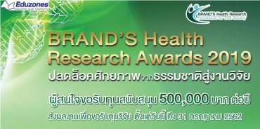 BRAND’S Health Research Awards 2019 เปิดให้ทุนสนับสนุน 500,000 บาทต่อปี tui sakrapee April 29, 2019 BRAND’S Health Research Awards 2019 ขอเชิญผู้สนใจขอรับทุนวิจัยโครงการ Brand’s Health Research Awards 2019 ศ.นพ.จอมจักร จันทรสกุล และ ดร.ลักขณา ลีละยุทธโยธิน ผู้ก่อตั้งทุนวิจัย BRAND’S Health Research Awards(เดิมชื่อ ทุนวิจัย Cerebos Awards) และคณะกรรมการพิจารณาทุน ขอเชิญผู้สนใจส่งผลงานขอรับทุนวิจัย BRAND’SHealth Research Awards2019 ประเภทวงเงินไม่เกิน 500,000 บาทต่อปี ทุนโครงการนี้ไม่มีข้อผูกมัดใด ๆ เพื่อส่งเสริมและสนับสนุนการค้นคว้าวิจัยทางโภชนศาสตร์เภสัชศาสตร์และสาขาที่เกี่ยวข้องให้แก่แพทย์เภสัชกร นักโภชนาการ พยาบาล นักวิทยาศาสตร์และนักวิชาการทั่วไป ทั้งนี้ทางโครงการฯ ขอเชิญชวนผู้สนใจขอรับทุน โดยส่งแบบเสนอโครงการวิจัย มาได้ตั้งแต่วันนี้ถึงวันที่… Continue Reading